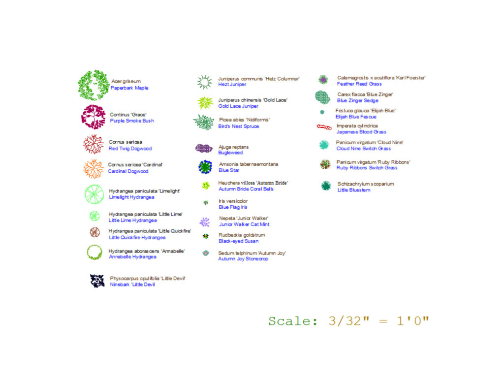 After we have agreed on the conceptual and functional design we flesh it out to create a detailed design before we are ready to proceed to the installation phase. The detailed design involves refining the boundaries of the “rooms”, choosing specific plants, deciding on the exact hardscaping materials and specifications for walls, walks, and paved surfaces, garden structures, water features and whatever else we may have divined for the project. If the plan involves the need for subcontractors such as excavators, masons, carpenters, arborist and whoever else we may need to provide detailed construction drawings or grading plans. All of this is done in AutoCAD files may actually be exchanging between us and the specialists to make it a truly collaborative effort.