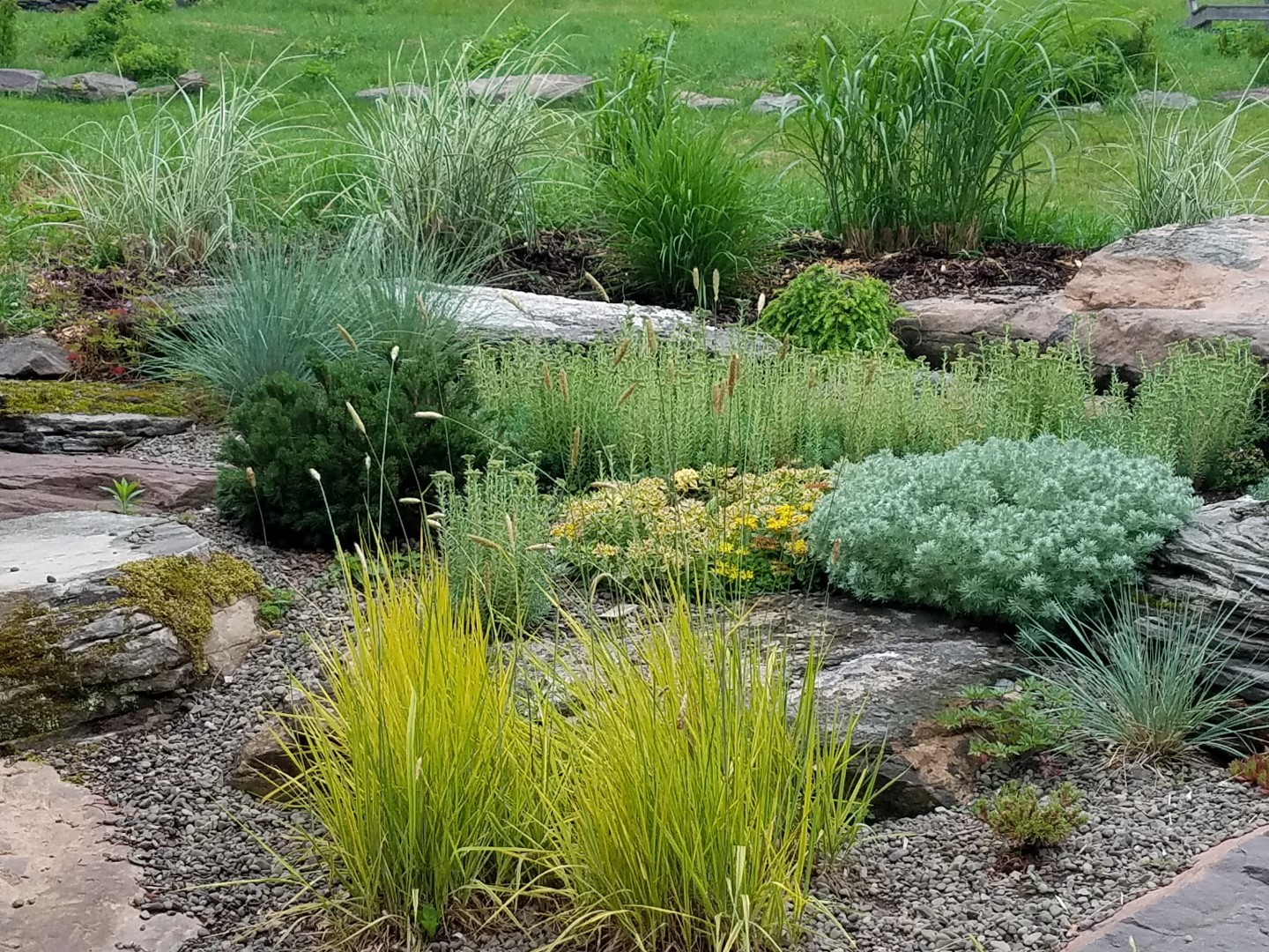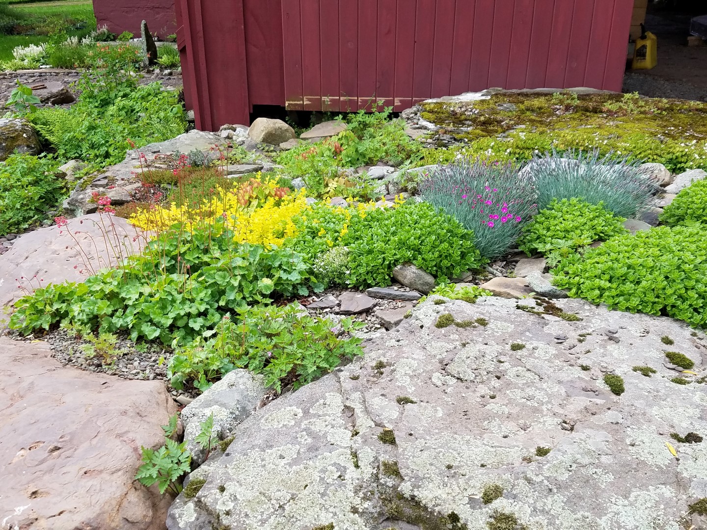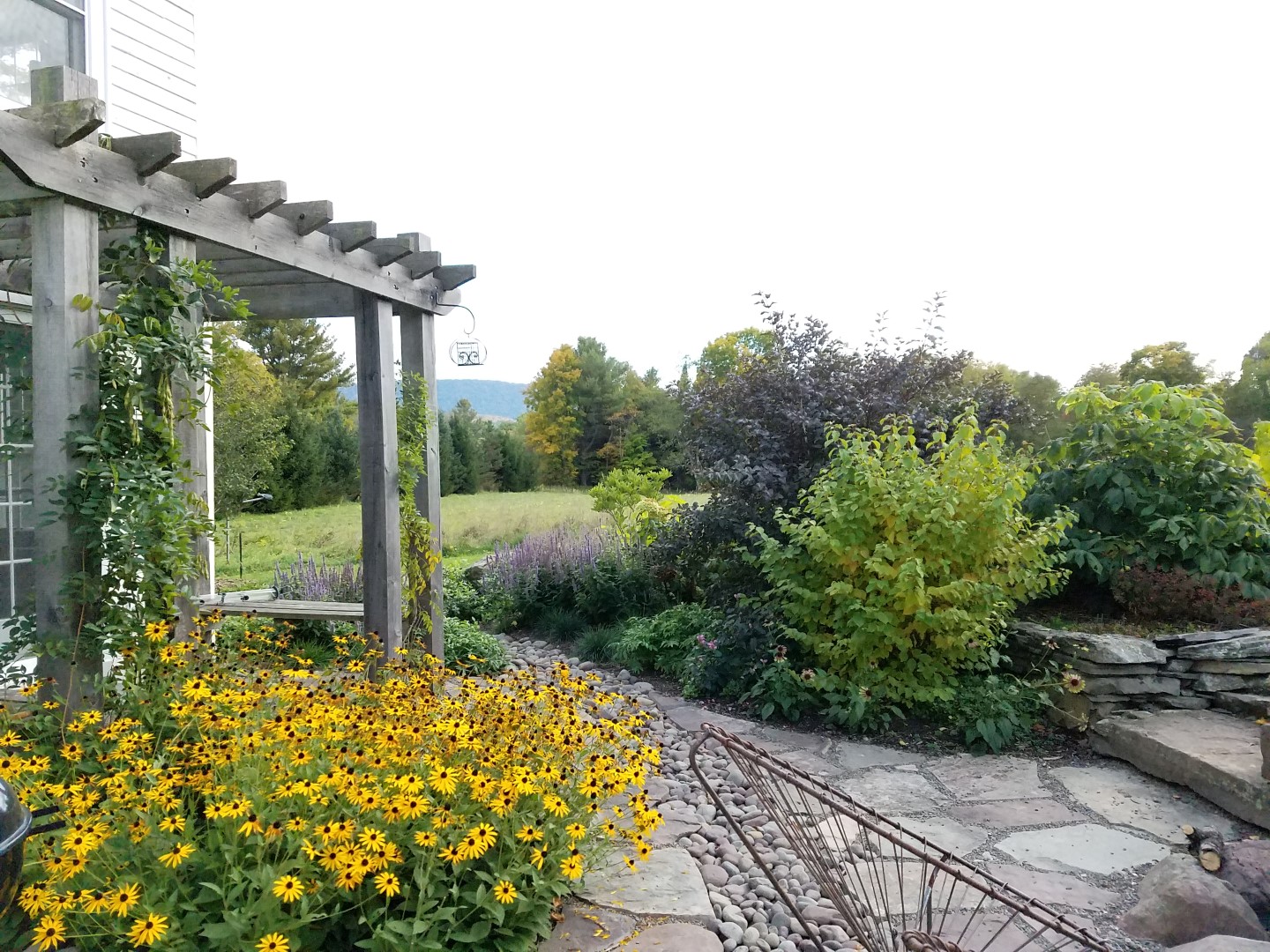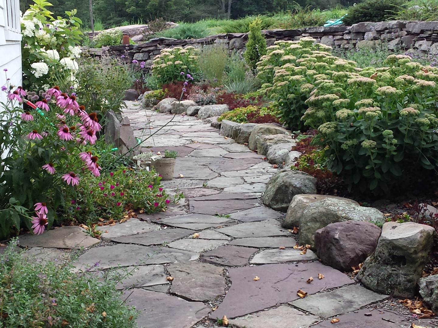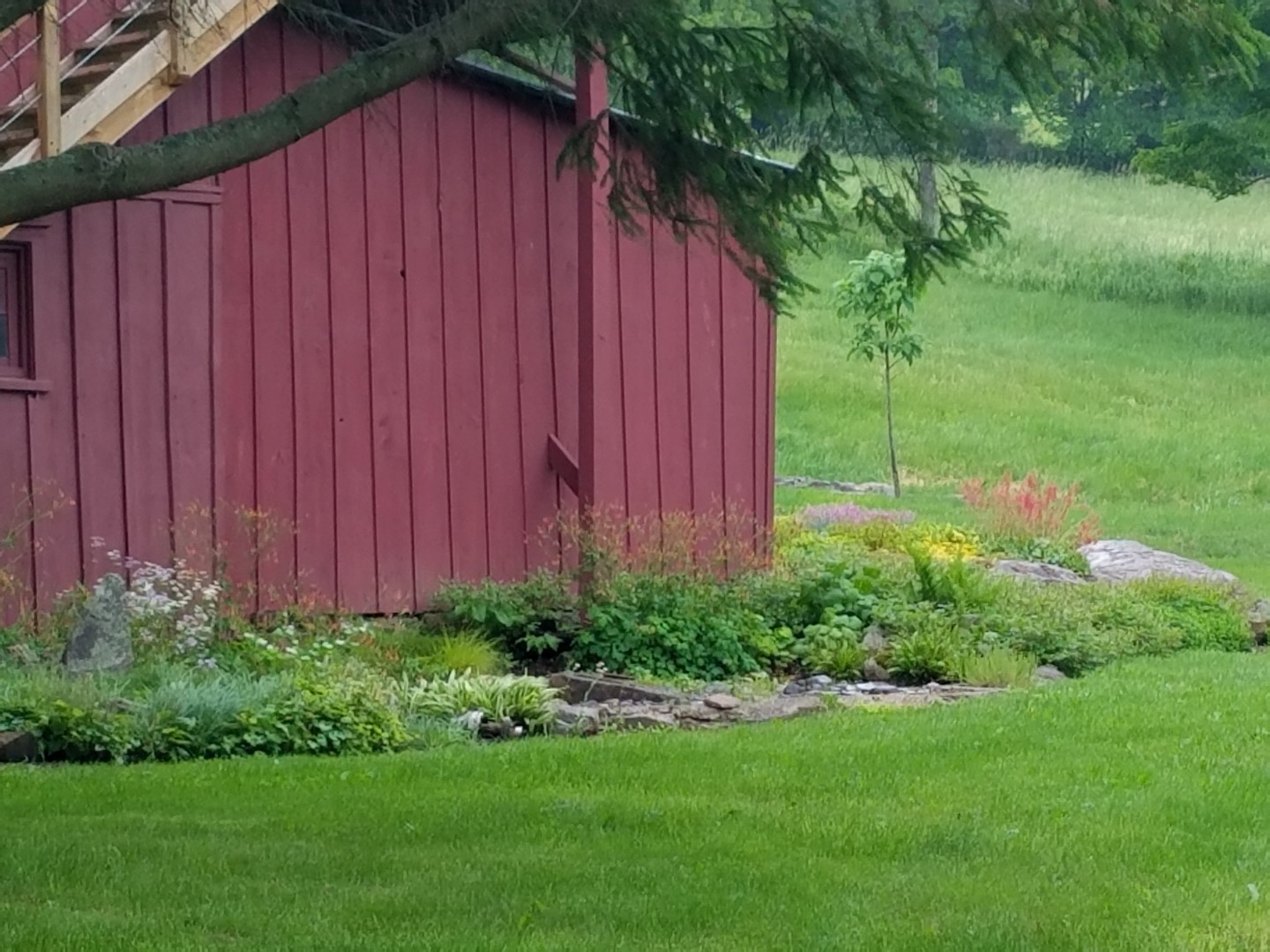We have been working on the property since 2012. The clients love this amazing old farm and are having a blast creating new interesting areas and destinations. This past year we added a water course that is mostly spring fed from the original spring house up the hill as well as the “ledge” and “scree” gardens behind the barn. The owner came up with name for his property and it reflects our shared approach to creating beautiful architectural lines for the beds, paths and walls as well as layering the sight lines as you take in the long views.
